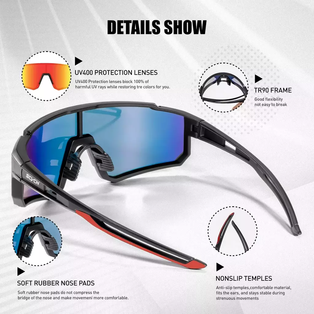 Com os Óculos de Sol Esportivos Scvcn, você garante proteção total contra os raios solares e mantém sua visão nítida em qualquer ambiente. Esqueça o incômodo dos olhos lacrimejando e conquiste uma experiência de pedal muito mais segura e confortável.
